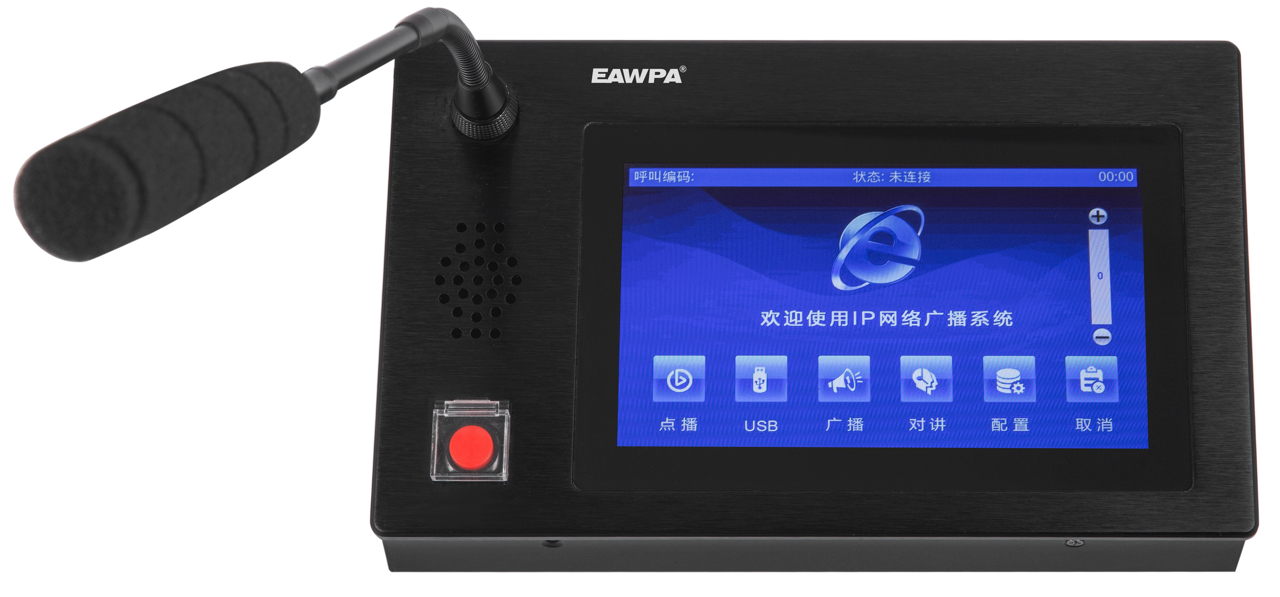 7.帶有一個緊急預警按鈕,當有緊急突發(fā)事件時,按下此按鈕就及時啟動廣播預警。