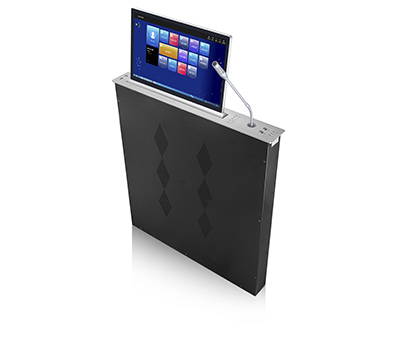 4.觸控超薄高清顯示屏與超薄圓軸式升降器無外露連接線、無連接背板、無外露螺絲,保證升降顯示觸控屏整體美觀大方。