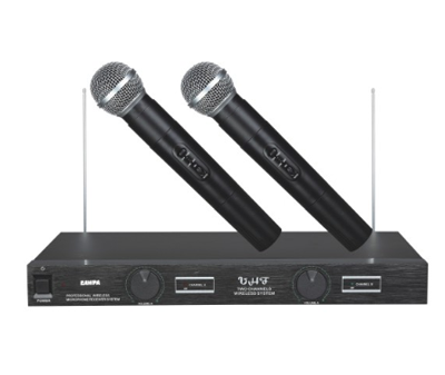 固頻,一拖二,手持咪(可選配領夾咪,頭戴咪)載波頻率:  210-270MHz