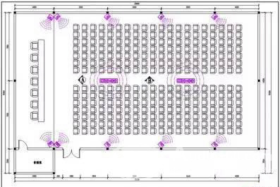 分散式布置:采用分散式的方式將若干吸頂音箱安裝在天花板上,或將若干音箱安裝在墻壁、座椅背后等方式分散布置。注意音箱應選用指向性尖銳的,并應限制它的分布范圍。使用吸頂音箱時天花板偏低為好。